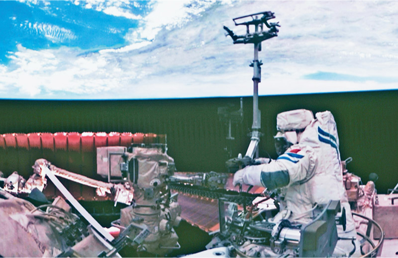 党的十八大以来,我国科技事业取得历史性成就、发生历史性变革,科技自立自强成果持续涌现。图为2024年7月3日在北京航天飞行控制中心拍摄的神舟十八号航天员李聪在空间站组合体舱外作业的画面。 新华社记者 郭中正/摄