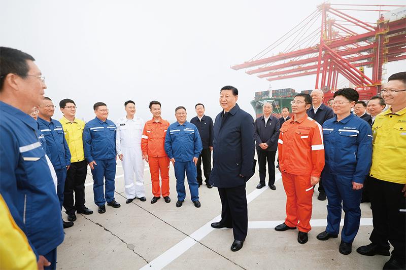 2024年5月22日至24日,中共中央总书记、国家主席、中央军委主席习近平在山东考察。这是22日下午,习近平在日照港亲切慰问港口科技工作者、运营人员、航运人员。 新华社记者 鞠鹏/摄